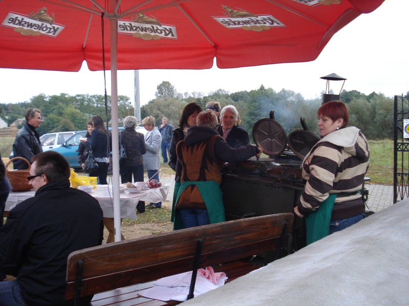 Po modlitwach w kościele udaliśmy się do mini skansenu w Królewie, gdzie została poświęcona figura Chrystusa Frasobliwego. Gospodarz pan Henryk Lewandowski zaprosił wszystkich na wspólną agapę podczas której można było zobaczyć eksponaty związane z życiem ludzi na wsi przed laty.